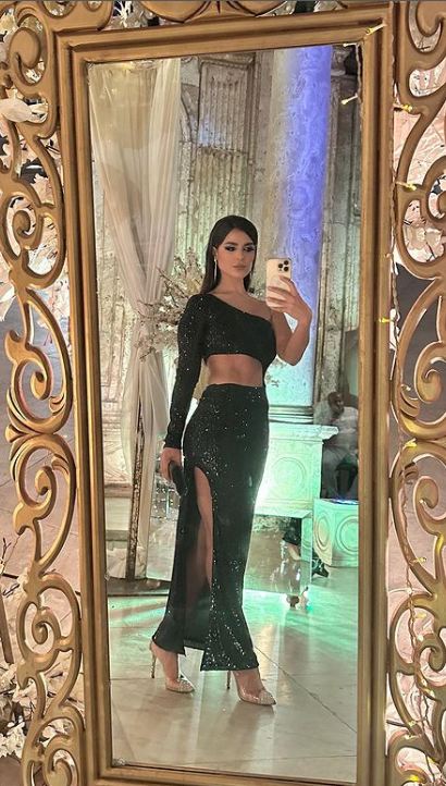 وظهرت رانيا بإطلالة أنوثية تميل للجرأة، حيث ارتدت فستان طويل مجسم، مكشوف البطن، صمم من قماش الترتر الأسود، بشق مثير كشف عن احد ساقيها، الفستان ينتمي لصيحة ألوان شولدر عكس قوامها الممشوق ووزنها المثالي، فيما انتعلت حذاءً بكعب عال.