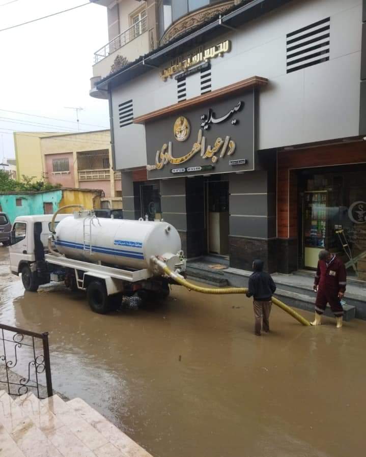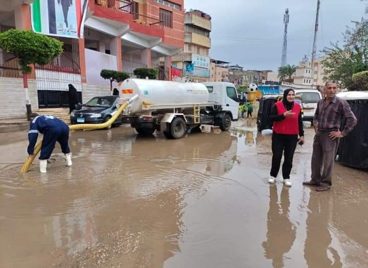 وتم الدفع بالمعدات والفرق الفنية بجميع المراكز والمدن وذلك لرفع تجمعات مياه الأمطار وذلك لتيسير الحركة المرورية وحركة المارة بالشوارع والميادين والطرق السريعة