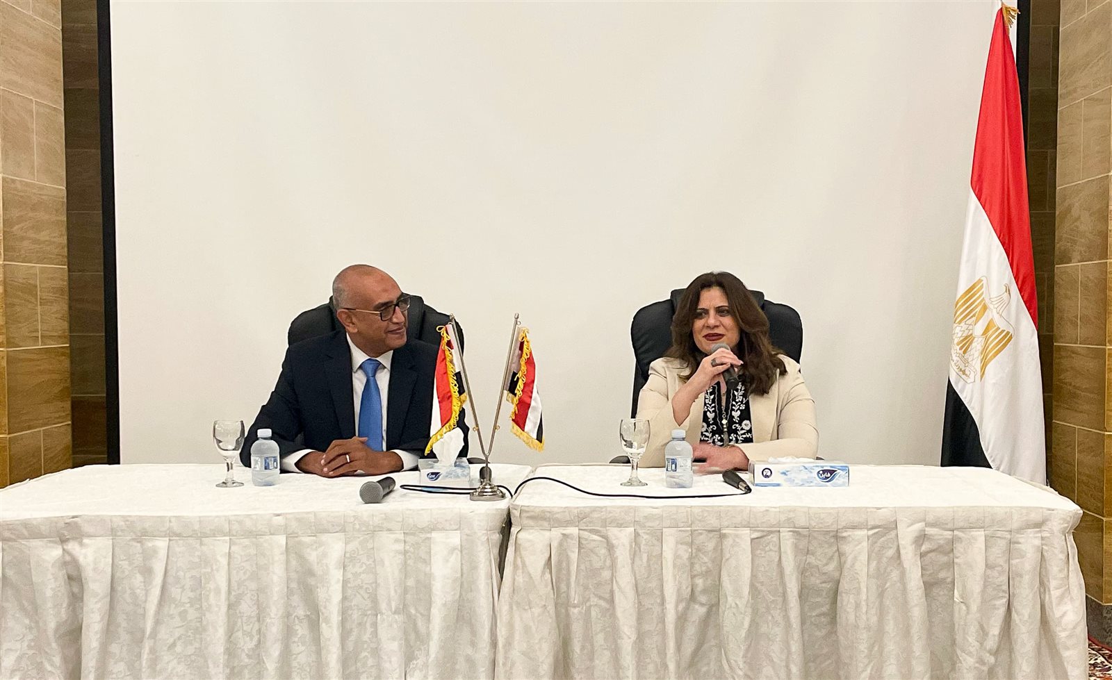 كما أكدت سيادتها على استمرارية تواصلها مع كل أبناء الجالية المصرية حول العالم من خلال التواجد على العديد من الجروبات الخاصة بالمصريين بالخارج عبر وسائل التواصل الاجتماعي المختلفة، كما تعهدت بدعم كافة رجال الأعمال والمستثمرين الراغبين في شراء أراض في مصر وذلك بالتنسيق مع وزارة الإسكان، وفيما يتعلق بالأوراق الثبوتية، قالت إنه سيجري التنسيق من أجل إرسال مهمات لاستخراج أوراق الثبوتية حال تجميع ٥٠٠ طلب لاستخراج هذه الأوراق، وأنها ستسعى لتسهيل إجراءات ما بعد مبادرة التسوية التجنيدية وتسهيل تجديد جواز السفر والحصول على الإقامات لمن لم يستفد من المبادرة.