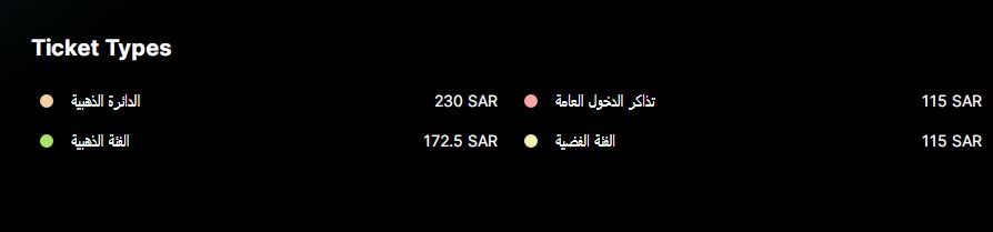 تراوحت أسعار تذاكر الحفل بين 230 - 1725 ريال سعودي.