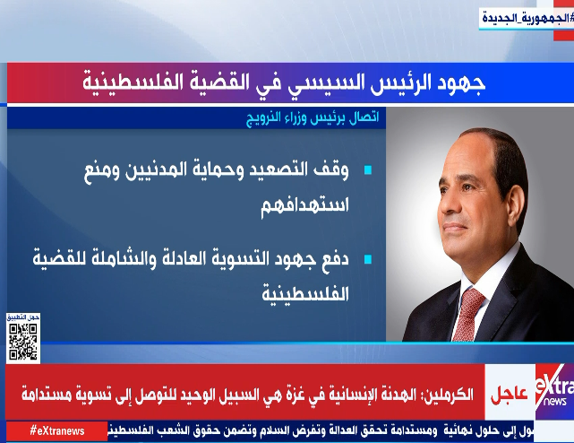 علقت الرئاسة الروسية “الكرملين”، على الهدنة في قطاع غزة، مشددة على أن الهدنة الإنسانية في قطاع غزة هي السبيل الوحيد للتوصل إلى تسوية مستدامة، وذلك حسبما جاء في نبأ عاجل لـ"إكسترا نيوز"، اليوم الأربعاء.