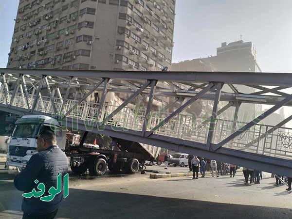 شهد شارع أحمد عرابي بمنطقة المهندسين في الجيزة، في الساعات الأولى من صباح اليوم الخميس، واقعة سقوط كوبري المشاة المتواجد بالمنطقة والواصل بين "الشبراوي وعمر أفندي"، نتيجة اصطدام سيارة نقل "تريلا" بالكوبري، ما أدى إلى سقوط أجزاء منه.