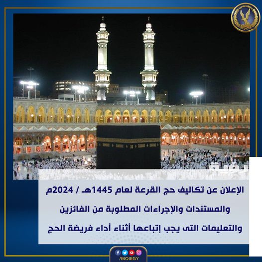 حج القرعة 2024…. كشفت وزارة الداخلية عن التكاليف والمستندات والأوراق المطلوبة من الفائزين بـ حج القرعة 2024، لعام 1445هـ.