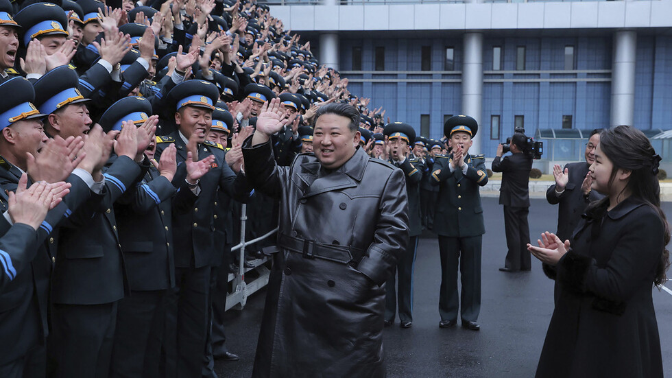 وظهر كيم مرتديا معطفا جلديا أسود وهو يبتسم ويحيي الموظفين الذين ارتدوا الزي الرسمي، وبدوا جميعا يصفقون بحماسة للزعيم وابنته.