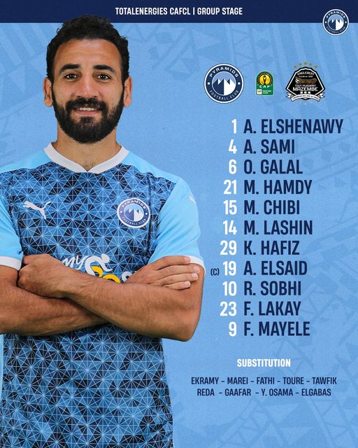 وخاض بيراميدز المباراة أمام مازيمبي بتشكيل ضم كلا من: