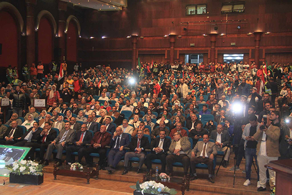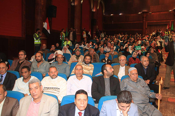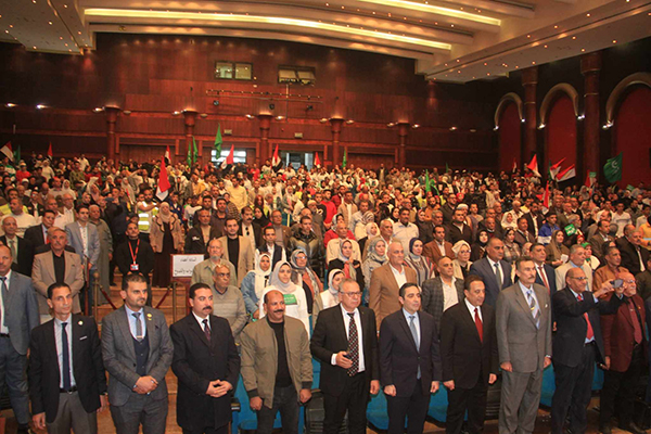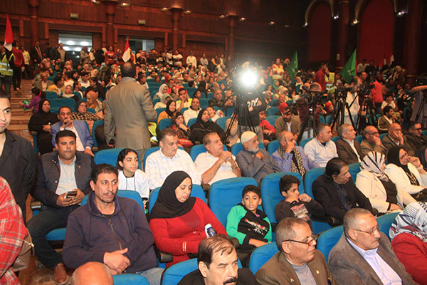 كما حرص المشاركون في المؤتمر الجماهيري الحاشد على رفع العلمين المصري والفلسطيني وشعارات مناصرة غزة لدعم الاشقاء في فلسطين.