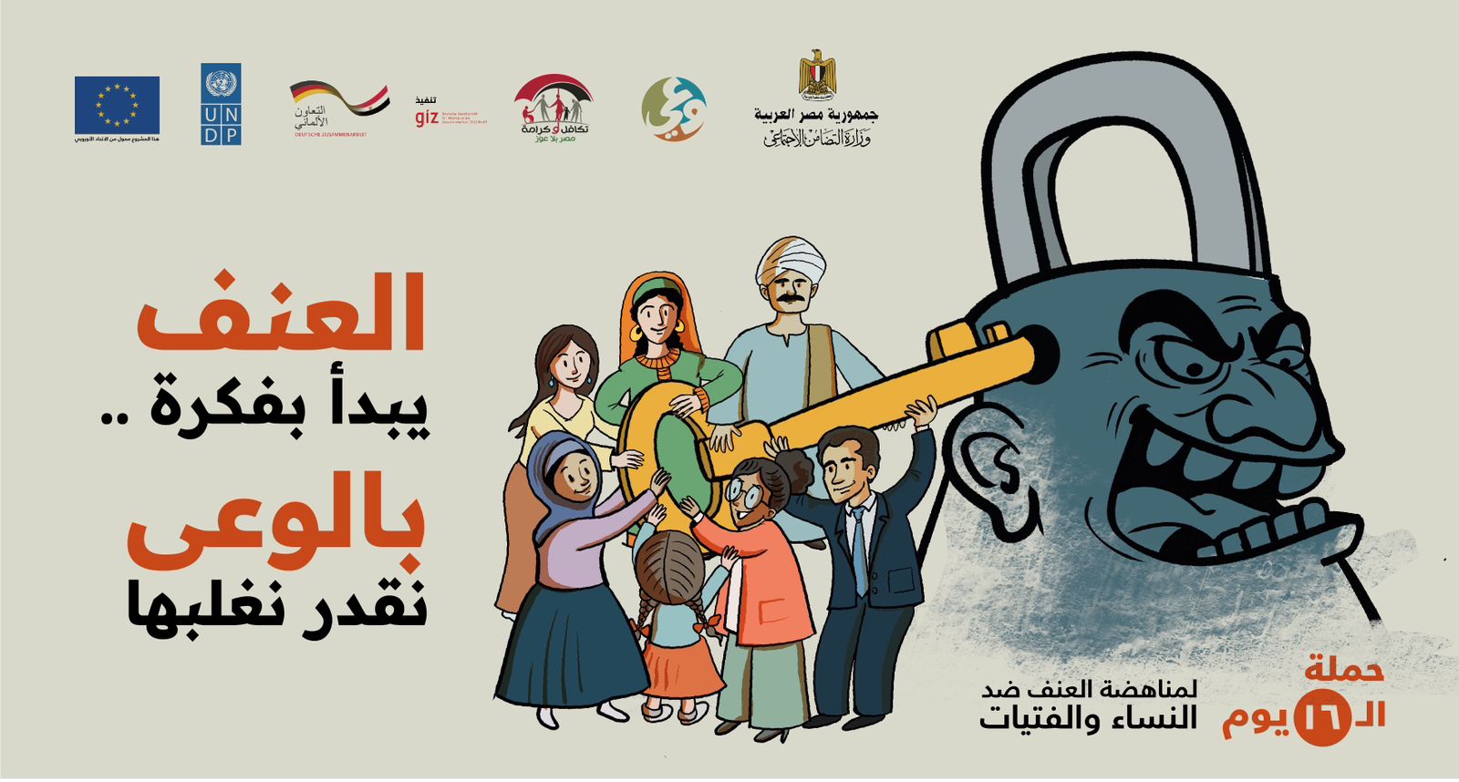 أطلقت نيفين القباج وزيرة التضامن الاجتماعي حملة الـ 16 يومًا لمناهضة العنف ضد النساء والفتيات، تحت شعار « العنف يبدأ بفكرة..بالوعي نقدر نغلبها»، حيث تبدأ الحملة من اليوم الأحد وتستمر حتي العاشر من ديسمبر المقبل، وذلك بالتزامن مع اليوم العالمي لحقوق الإنسان الذي يوافق 10 ديسمبر من كل عام.
