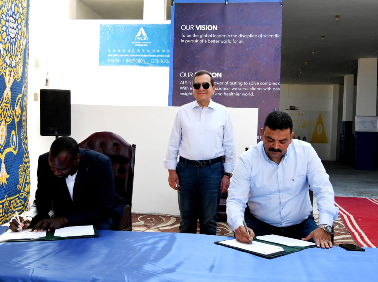 وخلال الجولة التفقدية لمعمل ASL ، شهد الوزير توقيع بروتوكول تعاون بين الهيئة المصرية العامة للثروة المعدنية وشركة ALS مصر والتى تعد جزء من مجموعة الخدمات المعملية الأسترالية المعتمدة دوليا .