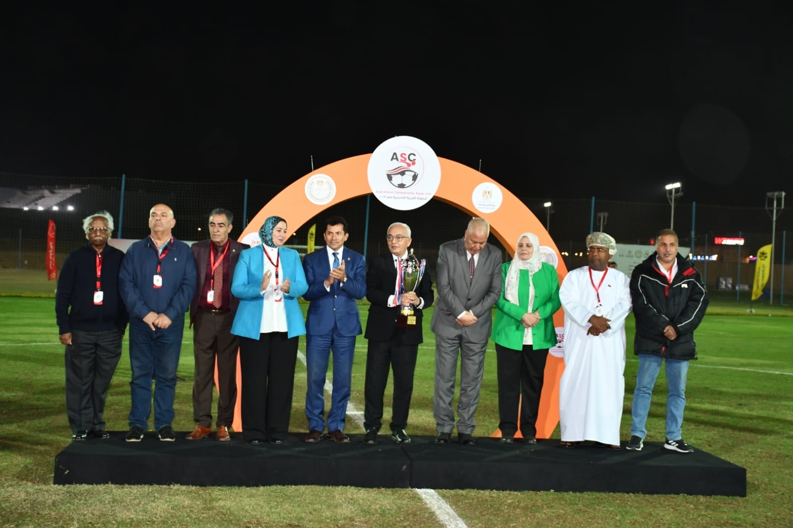 وعقب نهاية المباراة النهائية حضر صبحي وحجازي مراسم تسليم كأس البطولة للمنتخبين الفائزين، والتقط المشاركون الصور التذكارية بعد نهاية المنافسات.