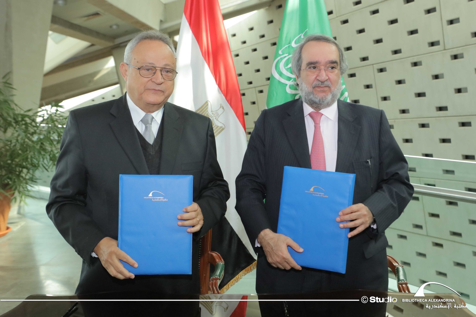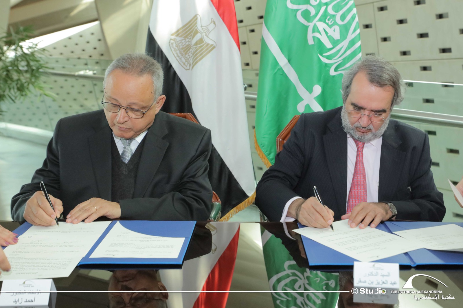 وقع الدكتور أحمد زايد؛ مدير مكتبة الإسكندرية، والدكتور عبد العزيز بن صقر؛ رئيس مركز الخليج للأبحاث، اتفاقية تعاون بين "مركز الخليج للأبحاث بالمملكة العربية السعودية ومكتبة الاسكندرية".