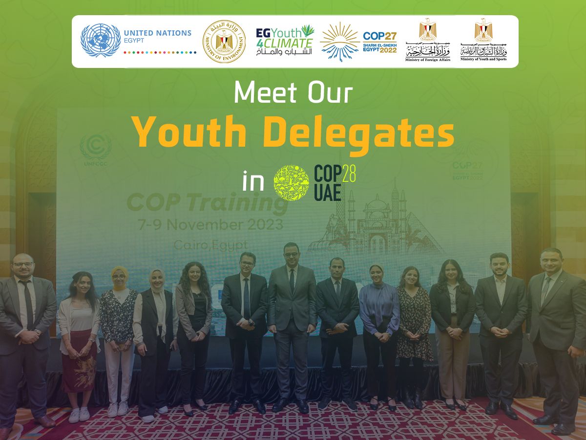 أعلنت وزارة الشباب والرياضة عن أسماء المندوبين الشباب بوفد مصر التفاوضي بمؤتمر إتفاقية الأمم المتحدة للدول الأطراف باتفاقية المناخ COP28 بمدينة دبي برعاية من الدكتور أشرف صبحي وزير الشباب والرياضة والسفير سامح شكري وزير الخارجية ورئيس مؤتمر COP27 والدكتورة ياسمين فؤاد وزيرة البيئة، وبدعم من منظمة الأمم المتحدة بدأ أعضاء اللجنة الوطنية للشباب والمناخ (EGYouth4Climate) الوصول الي مدينة دبي بدولة الامارات العربية المتحدة لحضور مؤتمر الدول الأطراف باتفاقية الأمم المتحدة للتغير المناخي COP28 المزمع عقده في الفترة من 30 نوفمبر وحتى 12 ديسمبر 2023.