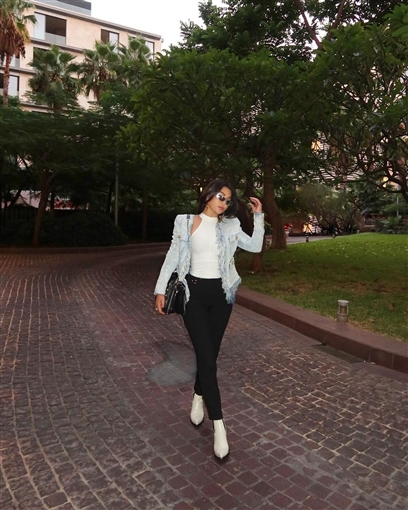 ظهرت الفنناة هيفاء وهبي بإطلالة كاجوال، نسقت فيها جاكيت جينز معTop أبيض وبنطلون أسود وحذاء أبيض وحقيبة سوداء.