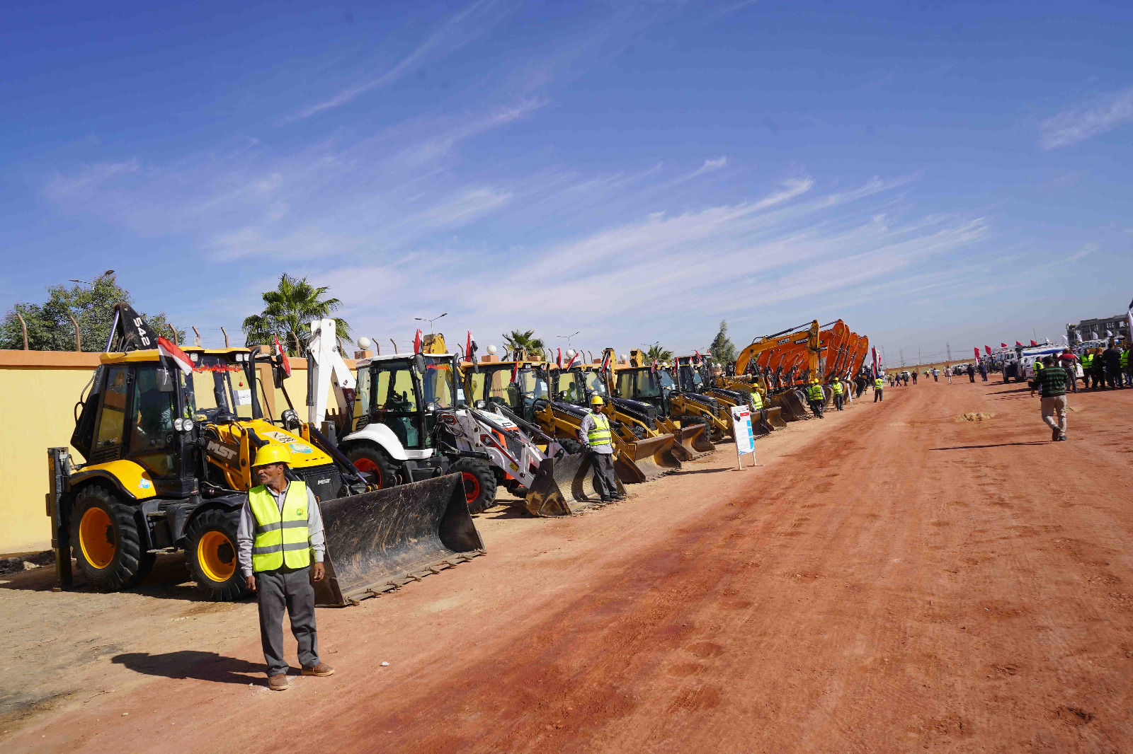 فى ضوء توجيهات فخامة الرئيس عبدالفتاح السيسي رئيس الجمهورية بالجاهزية التامة لمجابهة الكوارث والأزمات ومراجعة جميع معدات الإغاثة والتأكد من كفاءتها ومتابعة مستمرة من السيد الدكتور المهندس عاصم الجزار وزير الإسكان والمرافق والمجتمعات العمرانية الجديدة والمهندس ممدوح رسلان رئيس مجلس ادارة الشركة القابضة لمياه الشرب والصرف الصحى تفقد اللواء طارق الفقى محافظ سوهاج يرافقه اللواء علاء عبد الجابر السكرتير العام للمحافظة والمهندس محمد صلاح الدين عبد الغفار رئيس مجلس ادارة شركة مياه الشرب والصرف الصحي بسوهاج والعضو المنتدب وأعضاء لجنة وزارة التنمية المحلية المكلفة بمتابعة أعمال صيانة المعدات الهندسية بتفقد اصطفاف معدات الوحدات المحلية وشركة مياه الشرب والصرف الصحى بمدينة سوهاج الجديدة حيث تم المرور على جميع المعدات المصطفة ومراجعة كفاءتها وحالتها الفنية كما تم مناقشة العناصر البشرية من السائقين والفنيين حول مهام المعدات المكلفة بها كما تم تشغيل المعدات وإجراء تجارب للمهام الخاصة بكل معدة للتأكد من جاهزيتها للقيام بمهامها الأساسية.