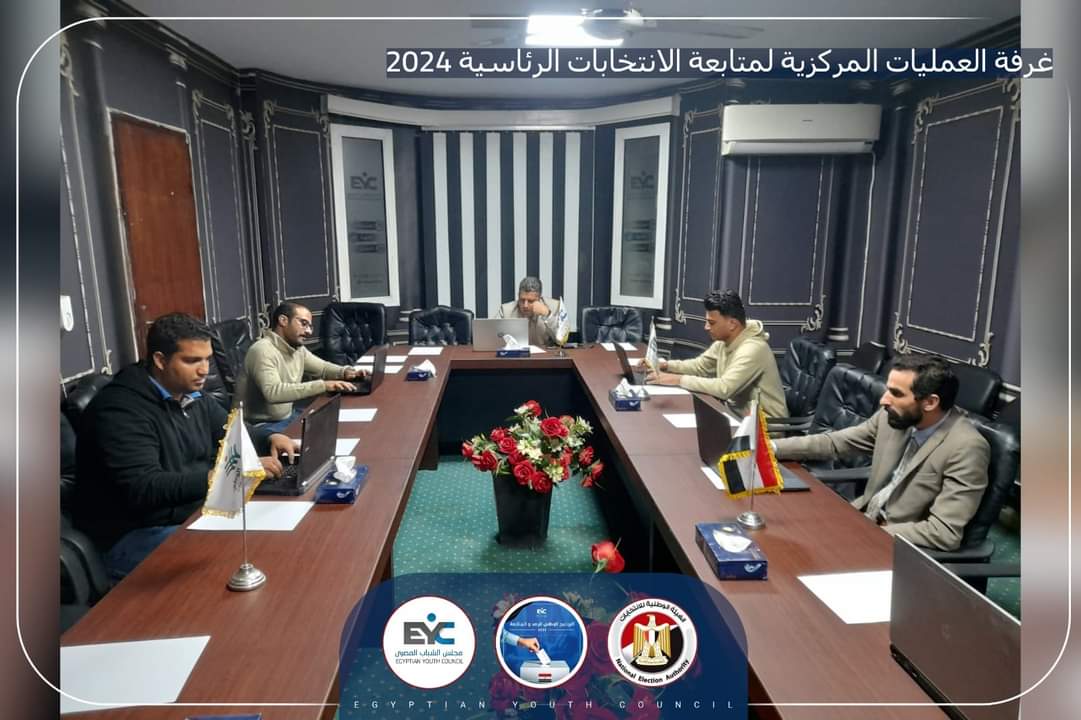 الشباب المصري يتابع تصويت المصريين بالخارج من داخل غرفة العمليات المركزية