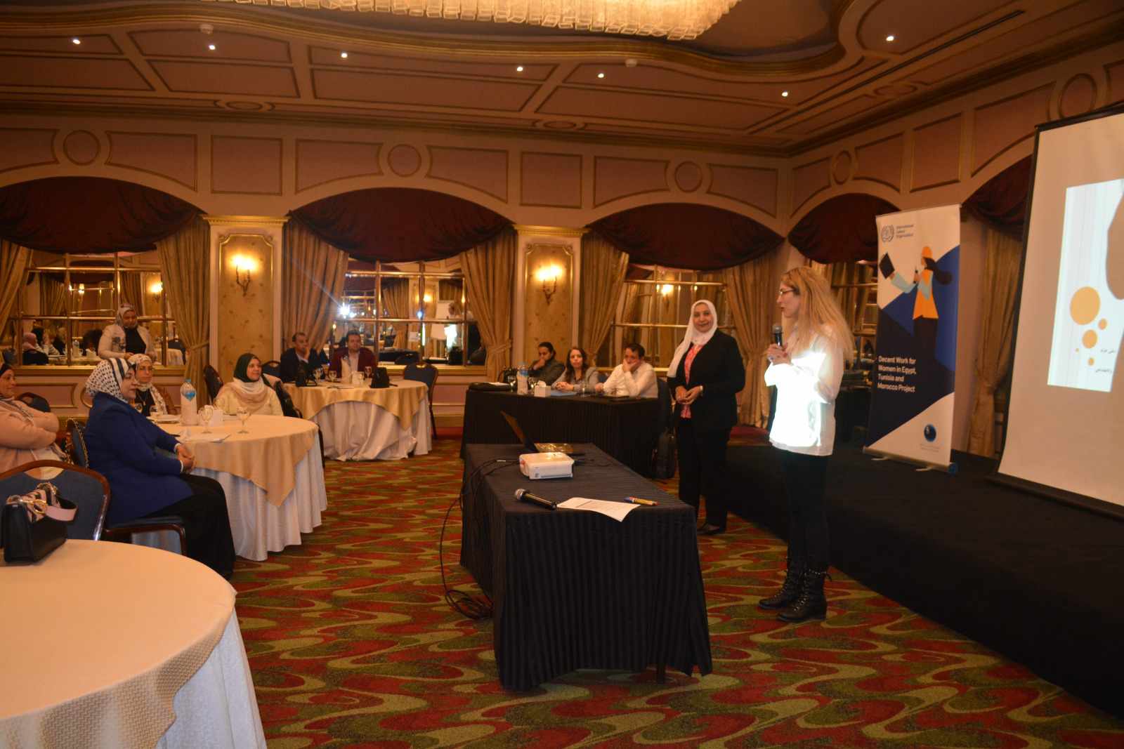 كما أكدت إيناس العيارى مديرة مشروع العمل اللائق للمرأة فى مصر وتونس والمغرب خلال كلمتها على التعاون الوثيق مع وحدة المساواة بين الجنسين والتمكين الاقتصادى للمرأة بوزارة العمل واشارت الى ضرورة استكمال العمل والبناء على ما مضى من خلال تنفيذ الخطة الوطنية لتعزيز المساواة بين الجنسين في مجال العمل.