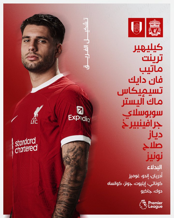 تشكيل ليفربول الرسمي لمواجهة فولهام بالدوري الإنجليزي:
