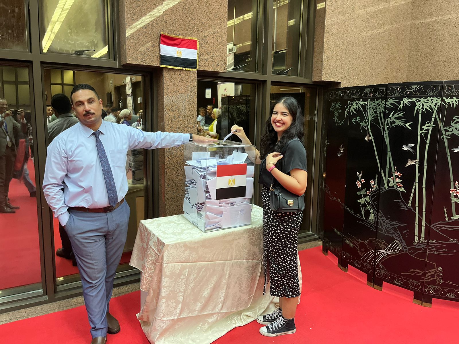 اصطحب الدكتور أشرف صبحي وزير الشباب والرياضة، الشباب المصري المشارك بمؤتمر المناخ COP28 بمدينة دبي للمشاركة في الاقتراع بالانتخابات الرئاسية التي تتم للمصريين بالخارج خلال الفترة من (١-٣) ديسمبر الجاري، واستمر توافد الشباب المصري علي القنصلية المصرية لمدة ثلاث أيام.