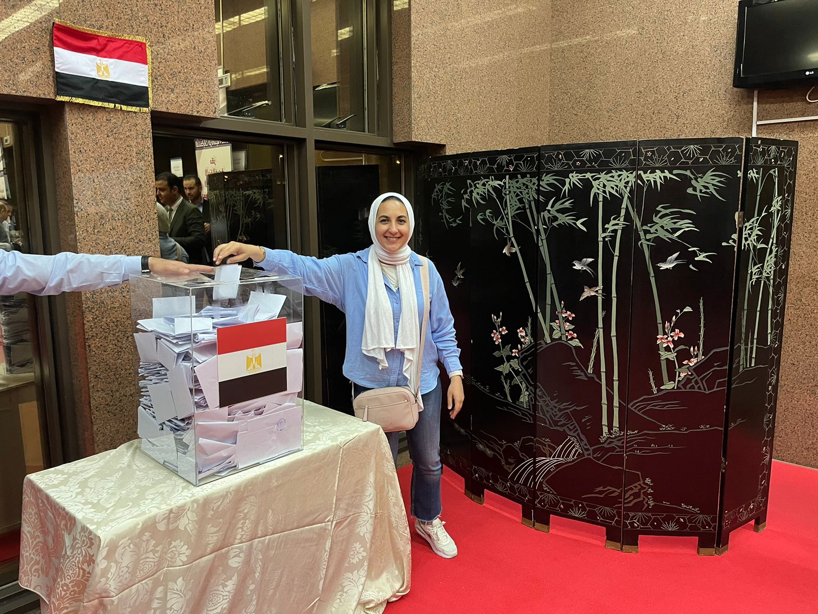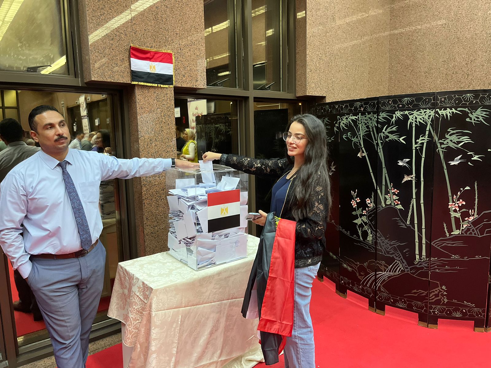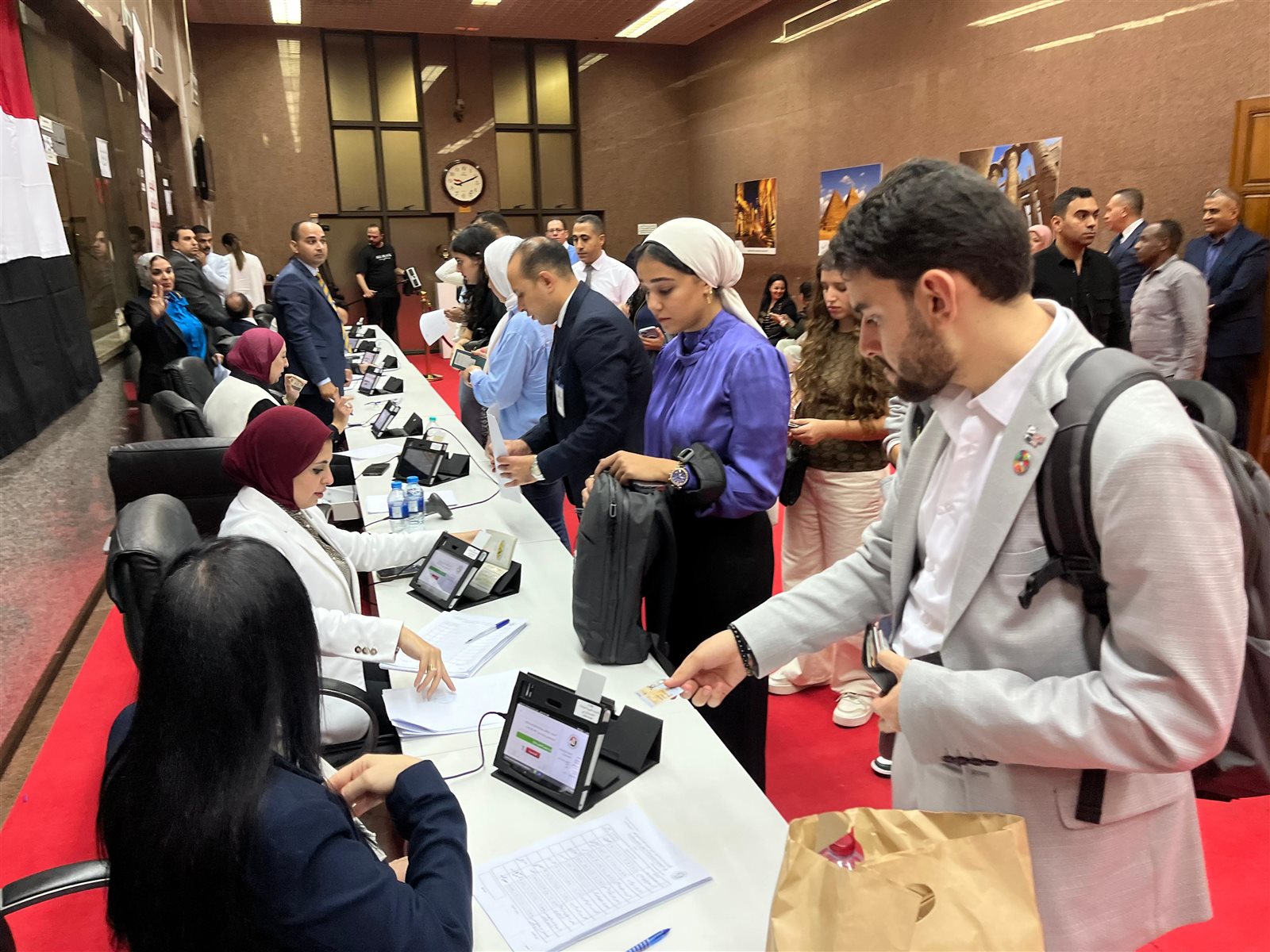 وتوجه أعضاء الوفد المصري المشارك بمؤتمر المناخ COP28 برئاسة مصطفي عز العرب معاون الوزير لشئون التنمية الثقافية والمجتمعية إلى مقر القنصلية المصرية بدبي، لممارسة حقهم الانتخابي، وكان في استقبالهم أشرف الديب القنصل العام بقنصلية جمهورية مصر بدبي.