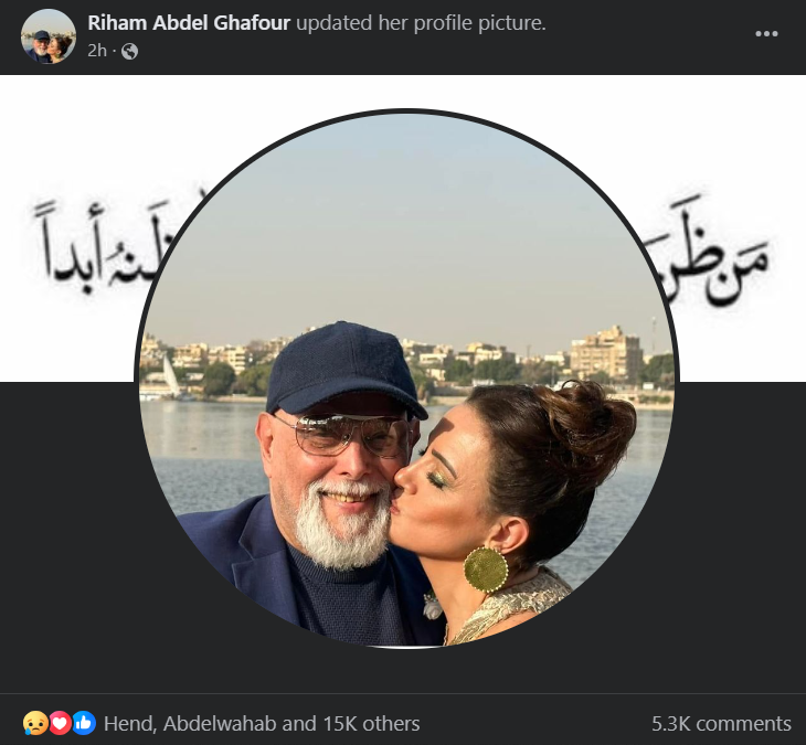 في الوقت نفسه، حرصت ريهام على تغيير صورتها الشخصية عبر حسابها الرسمي بموقع "فيس بوك"، حيث استبدلتها بصورتها مع والدها النجم الراحل أشرف عبدالغفور.