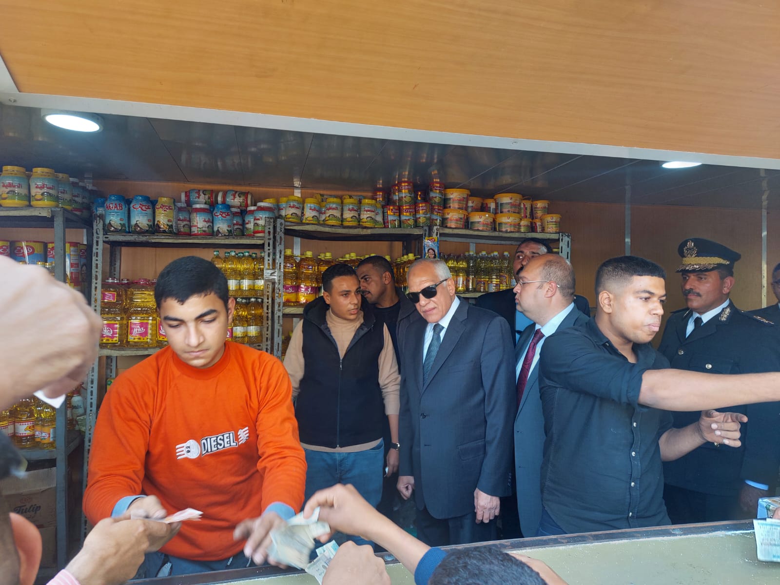 محافظ الجيزة يتفقد المنافذ بأبوالنمرس للتأكد من توافر السلع واحتياجات المواطنين