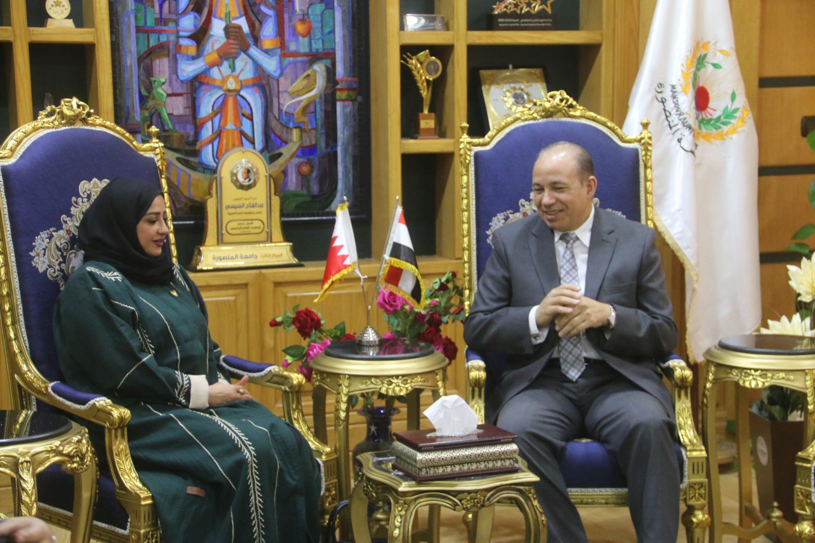 المستشار الثقافى لسفارة البحرين فى زيارة جامعة المنصورة