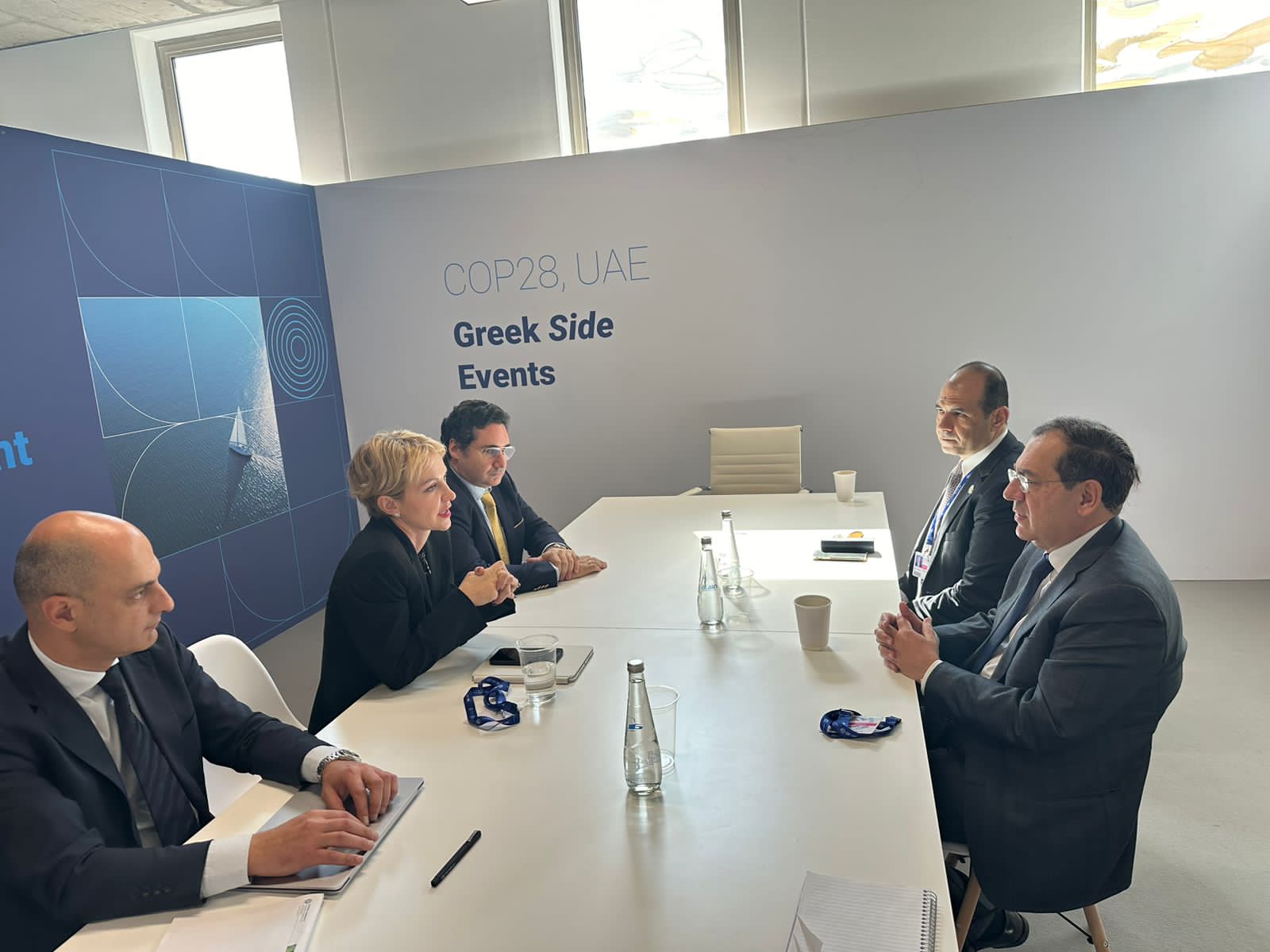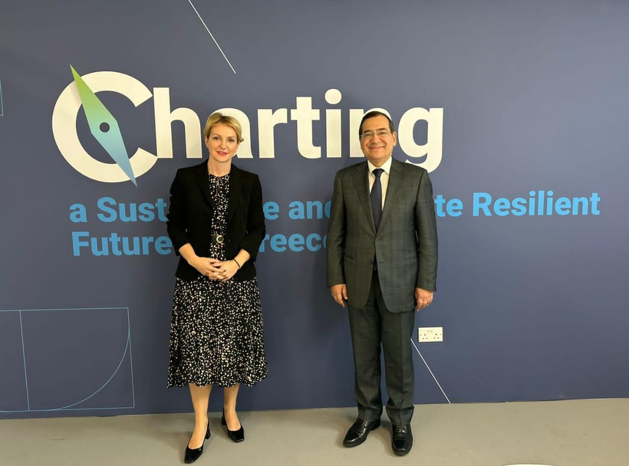 وعقد الوزير جلسة مباحثات ثنائية مع السيدة ألكسندرا سدوكو – نائبة وزير البيئة والطاقة اليونانى، وتناول اللقاء تبادل الرؤى حول التوسع فى إنتاج الطاقة الخضراء من المصادر المختلفة، وبحث سبل استغلال البنية التحتية لكلا البلدين، فضلاً عن قدرات مصر الحالية المتمثلة فى مصانع الإسالة لتداول ونقل الغاز الطبيعى لليونان ومن ثم لأوروبا.