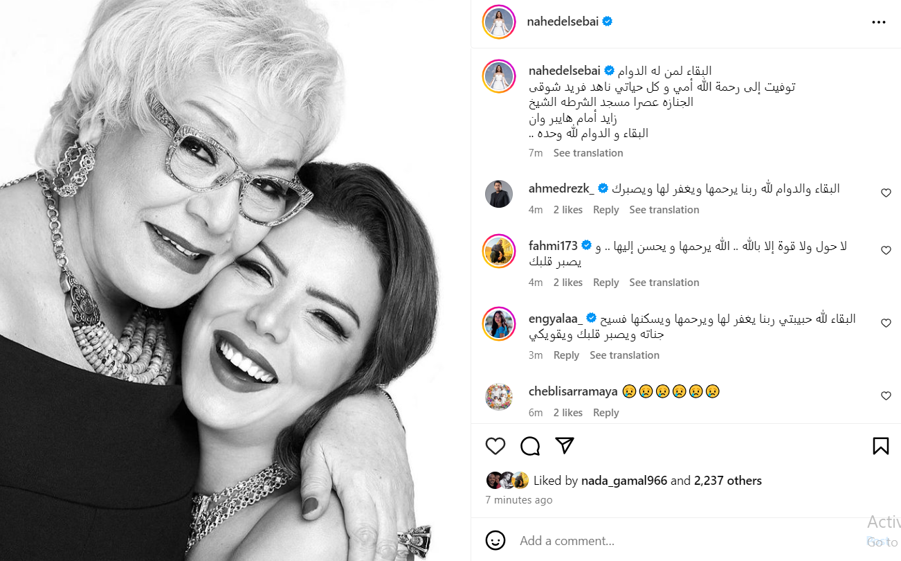 - نعي ناهد السباعي لوالدتها ناهد فريد شوقي