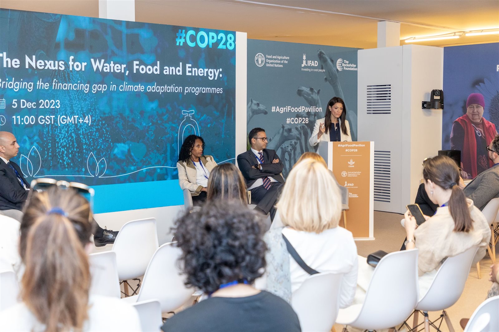 خلال فعاليات مؤتمر المناخ COP28 المنعقد بدولة الإمارات العربية المتحدة، نظم الصندوق الدولي للتنمية الزراعية «إيفاد»، جلسة خاصة لمناقشة المنصة الوطنية لبرنامج «نُوَفِّــي» محور الارتباط بين مشروعات المياه والغذاء والطاقة، ودورها كمصنة وطنية رائدة في سد فجوة تمويل المناخ وتعزيز جهود التنمية والتحول الأخضر، وتسليط الضوء على البرنامج باعتباره نموذجًا قابلًا للتكرار في الدول النامية والاقتصاديات الناشئة، للتغلب على التحديات المناخية وتعزيز القدرة على حشد التمويل لمشروعات التخفيف والتكيف.