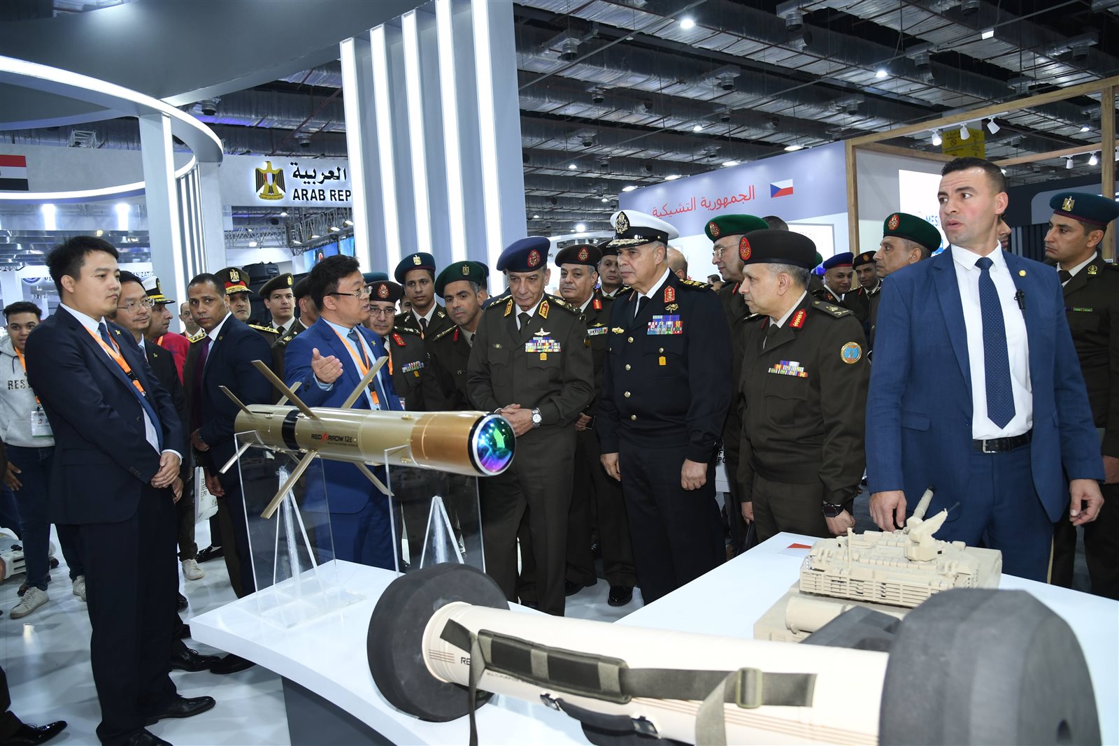 تفقد القائد العام للقوات المسلحة وزير الدفاع أجنحة معرض إيديكس والمرور على عدد من الشركات العارضة وإستمع من ممثلوا الشركات إلى شرح لما تتضمنه المعروضات لأحدث المعدات والتكنولوجيات والأنظمة الأمنية المتطورة فى مجال الصناعات الدفاعية ، معرباً عن تقديره لكافة الدول والشركات المشاركة بالمعرض، مختتماً الجولة التفقدية بالإشادة بكافة الإجراءات التنظيمية للمعرض والقدرة على إستقبال الأعداد الكبيرة من الوفود والزائرين المهتمين بالمجالات الأمنية والصناعات الدفاعية .