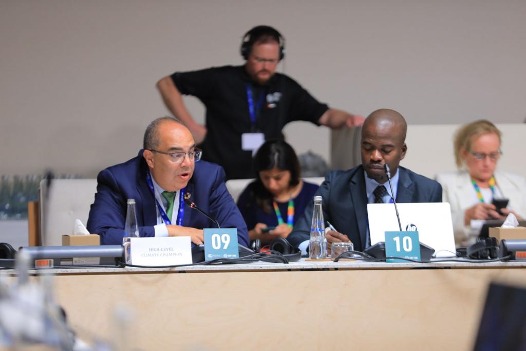 في جلسة حول "أجندة شرم الشيخ للتكيف"، أكد محيي الدين ضرورة تسريع تنفيذ الأجندة التي تساهم مجالات عملها الرئيسية في تنفيذ عدد من أهداف التنمية المستدامة المتعلقة بالأمن الغذائي والمائي وحماية الحياة البحرية والتحول الأخضر للمدن وتعزيز قدرة البنى التحتية على الصمود في مواجهة التغير المناخي.