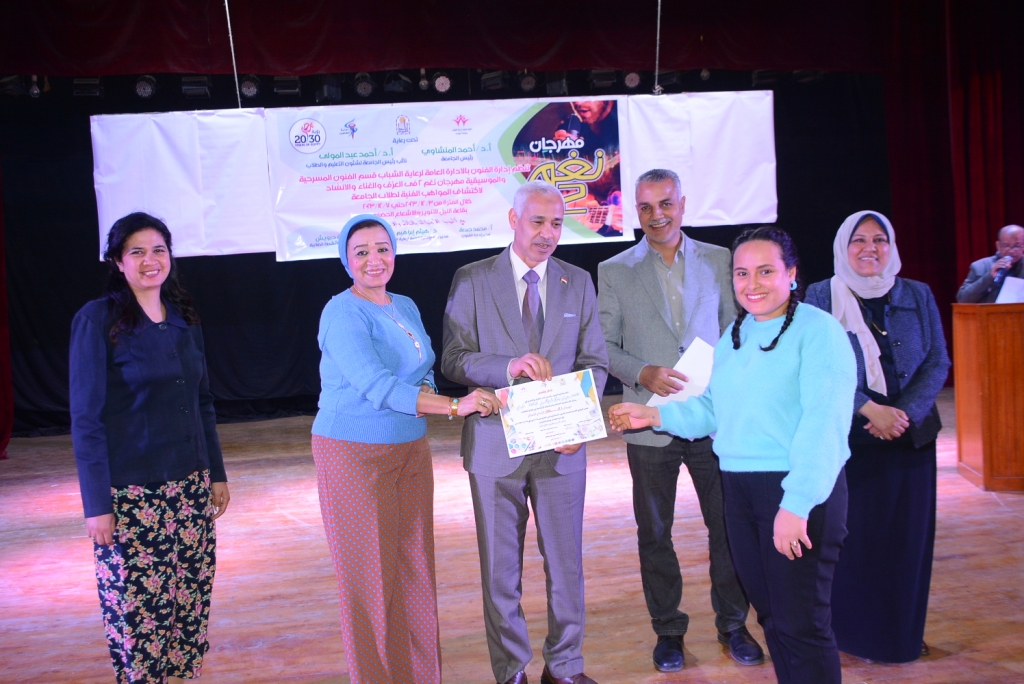 وأشار الدكتور أحمد عبد المولى، أن المهرجان شارك فيه أكثر من (200) طالب وطالبة من مختلف الكليات، مؤكداً أن الجامعة حريصة على اكتشاف العناصر المتميزة من أبنائها فى مختلف المجالات والأنشطة الطلابية؛ وتوفير سبل الدعم والرعاية اللازمة لهم لإبراز مواهبهم وإبداعاتهم، وتنمية قدراتهم المتميزة على نحو يضمن ثقل شخصياتهم، وتوسيع مداركهم الفكرية والثقافية والفنية، باعتبار أن العزف والغناء والإنشاد جزءا أساسيا من التعبير الفني ووسيلة للتواصل والتأثير على المشاعر والأفكار لدى الجمهور.
