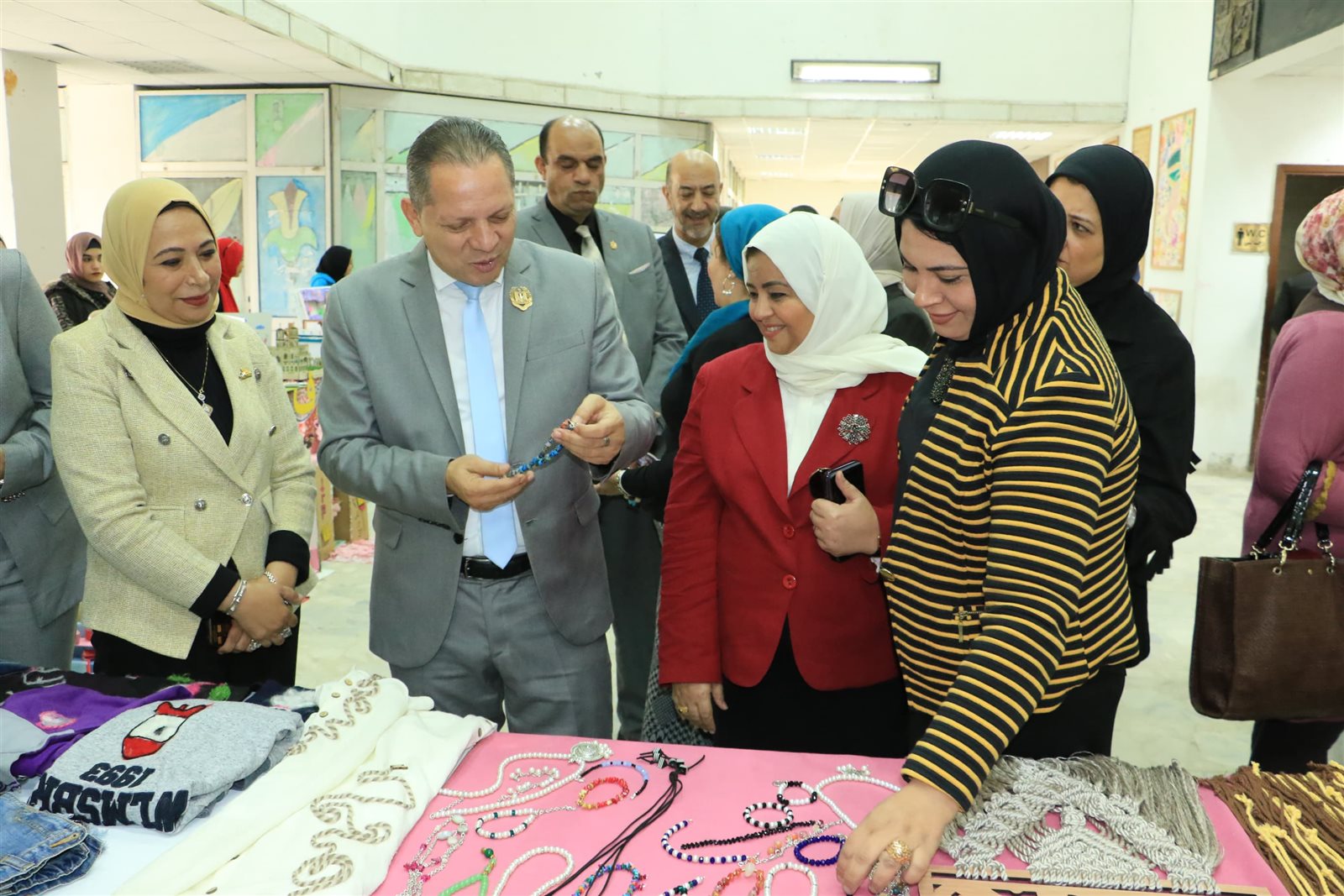 وشهد د. حمدان ربيع رئيس جامعة دمياط، ترافقه د. أماني عوض عميد كلية التربية، د. دينا هويدي مدير عام ثقافة المرأة، افتتاح معرض نتاج الورش الفنية التعليمية التى تم تنفيذها طوال فعاليات الملتقى على مدار يومين والتي اشتملت على عدد 69 قطعة تتنوع بين 4 قطع خيامية، 24 قطعة إكسسوار، 5 قطع مكرمية، 30 لوحة من فن الماندالا، 6 قطع معاد تدويرها باستخدام الصوف الملبد، وذلك بحضور قيادات الجامعة والكلية وأعضاء الكادرين الأكاديمي والإداري والقائمين على الملتقى والفريق المنظم.