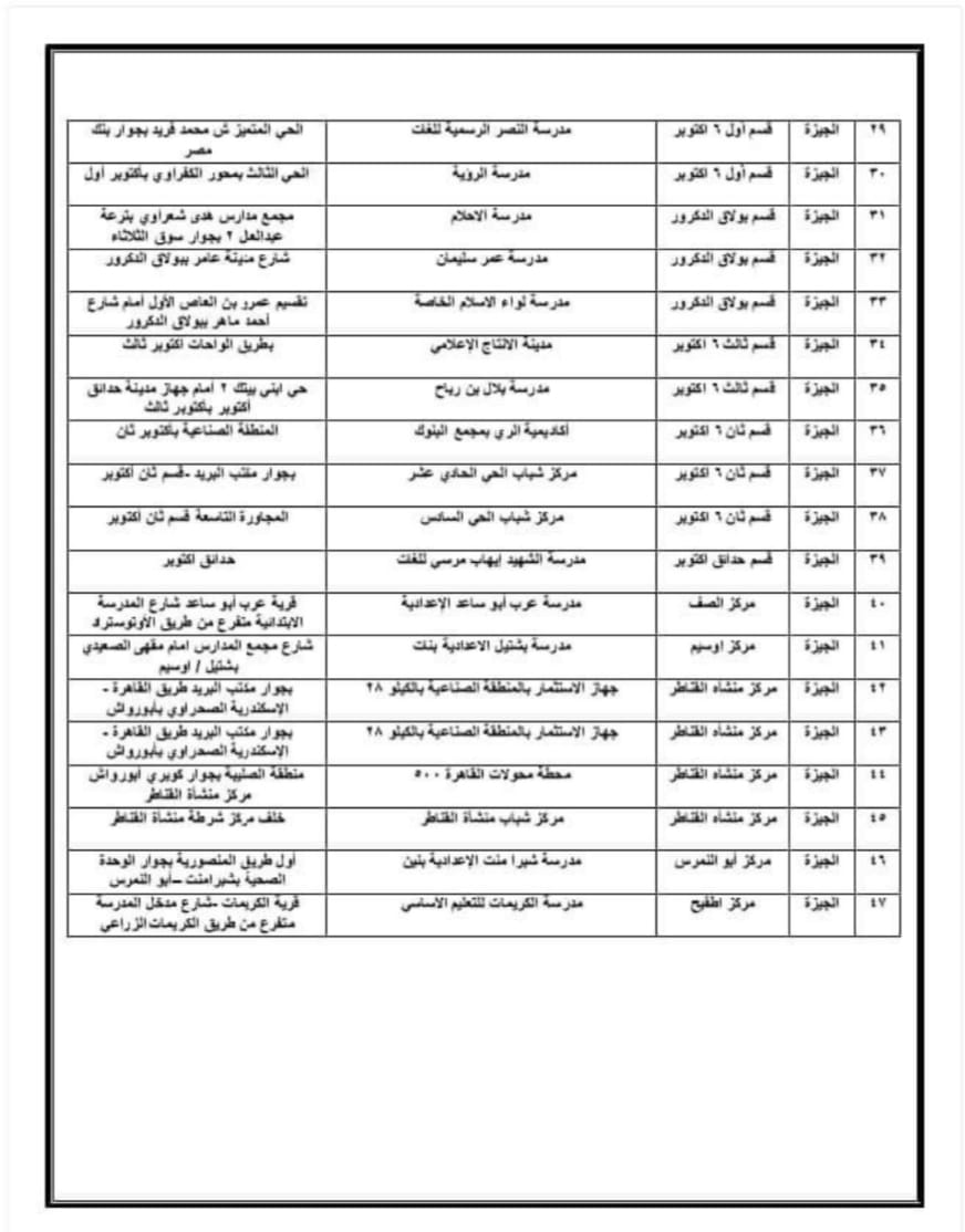 مقرات اللجان الانتخابية للوافدين في الجيزة
