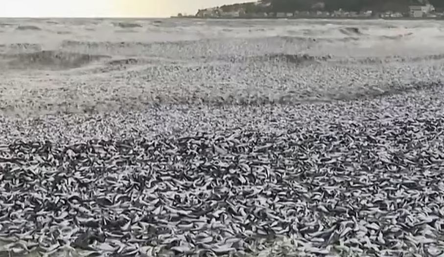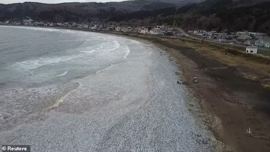 جرفت الأمواج آلاف الأطنان من الأسماك الميتة إلى أحد الشواطئ في شمال اليابان، مما أثار تكهنات بوجود تلوث إشعاعي منبعث عن محطة فوكوشيما النووية قد أدى إلى إحداث دمار في النظم البيئية المحلية.