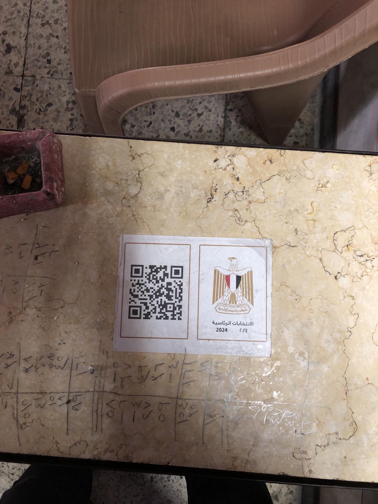 وتواجدت تلك الملصقات بعدد من المقاهي المختلفة في محافظة القاهرة، مكتوب بها:"انتخابات الرئاسة ٢٠٢٤" وبجانبها باركود يسهل على المواطن معرفة لجنته.