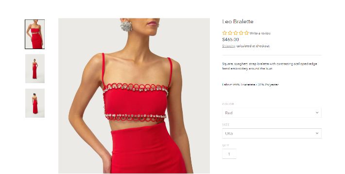 وارتدت أسماء جلال فستان جرئ باللون الأحمر الفاقع مكون من قطعتين، وبالتدقيق تبين أن سعر الشريط سباجيتي المطرز يدويًا بحافة صدفية متباينة حول الصدر يصل إلى 14 ألف جنيه، بينما سعر التنورة يصل سعرها إلى 13 ألف جنيه، ليسجل سعر الإطلالة بالكامل 27 ألف جنيه.
