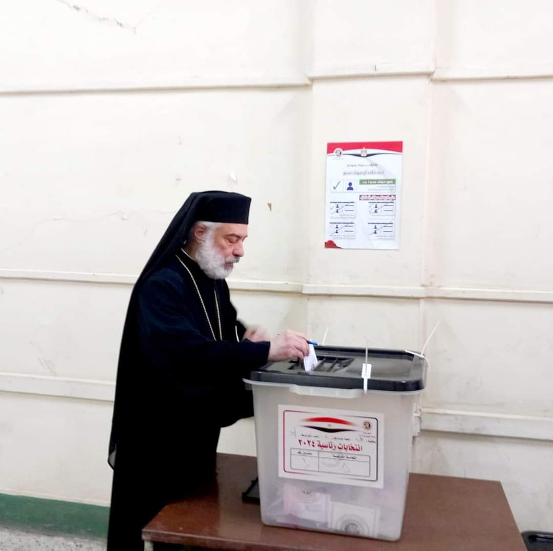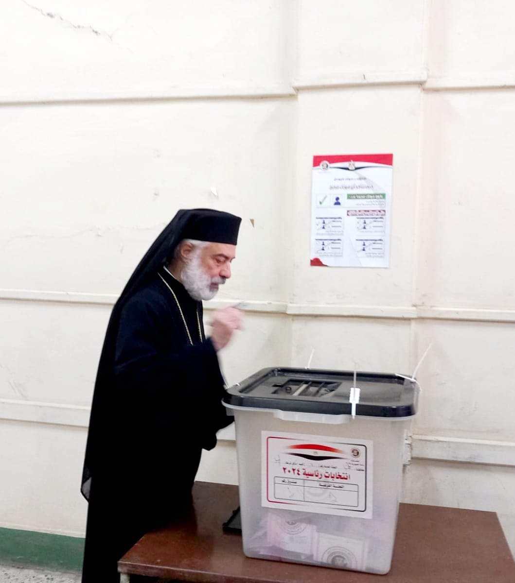 الأنبا باسيليوس يدلي بصوته في الانتخابات الرئاسية بالمنيا..صور