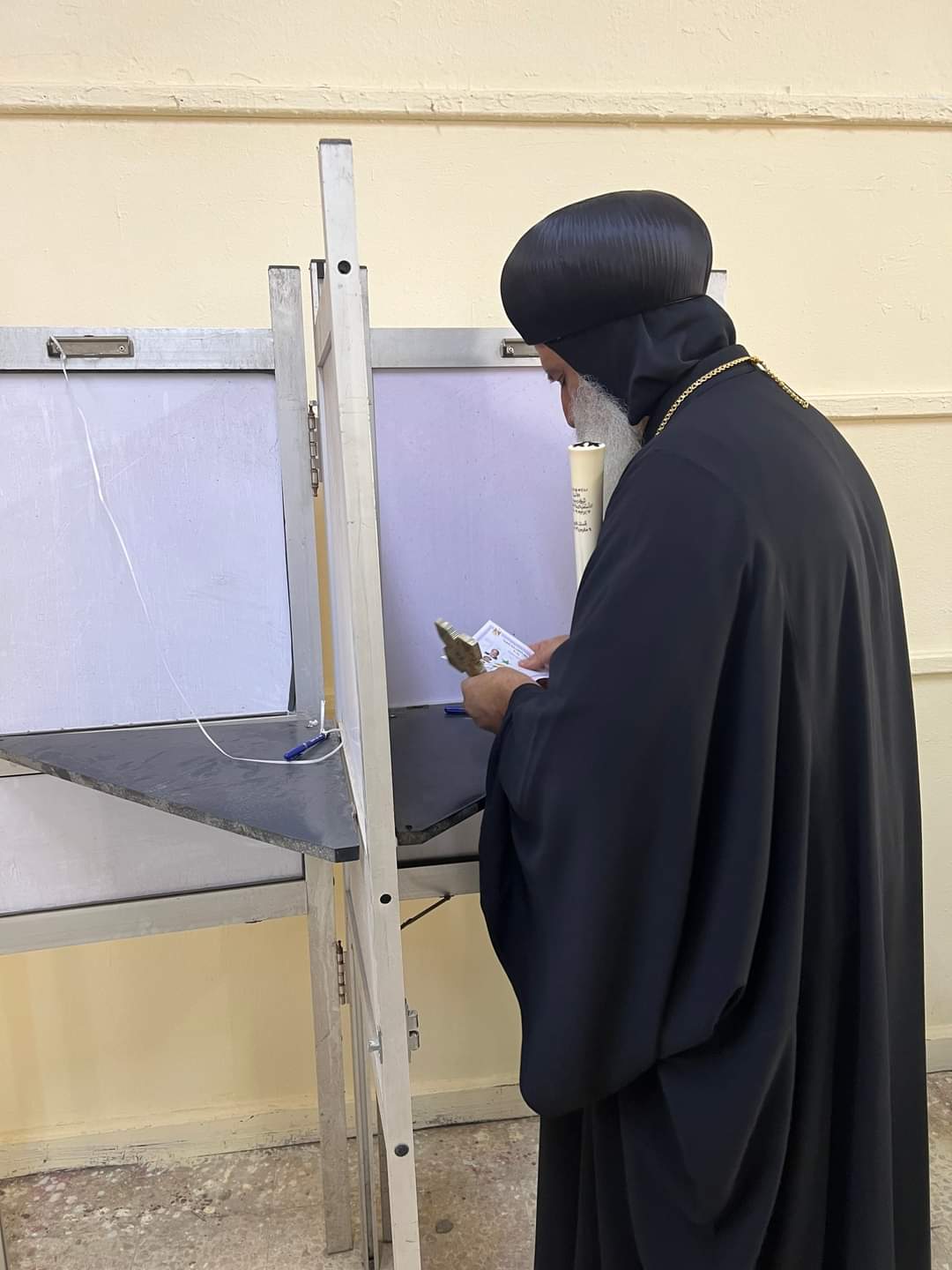 أدلى، منذ قليل، الأنبا ثيئودوسيوس، أسقف الأقباط الأرثوذكس بالجيزة، بصوته في الانتخابات الرئاسية 2024 بمدرسة على أحمد فهمي بالقطاع.