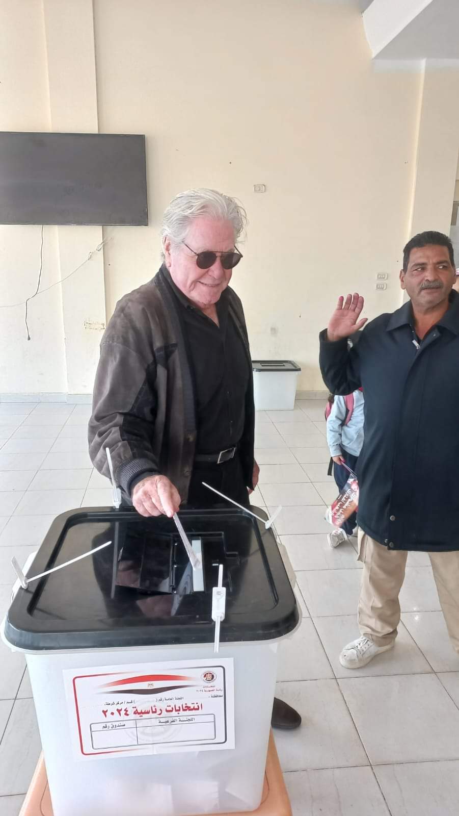 حرص النجم الكبير حسين فهمي، على الإدلاء بصوته في الانتخابات الرئاسية 2024، بمقر لجنته بمدينة الشيخ زايد.