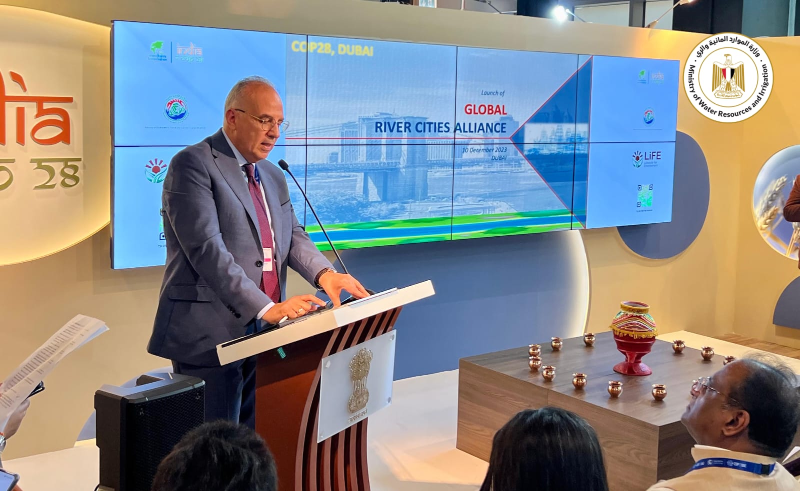 وذلك فى كلمته بجلسة "إطلاق التحالف العالمي للمدن النهرية" والمنعقدة ضمن فعاليات مؤتمر المناخ COP28 .