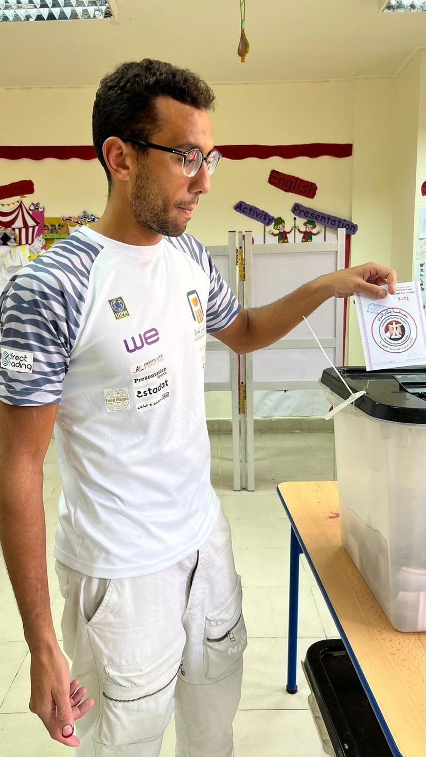 حرص أحمد الجندي بطل الخماسي الحديث الأولمبي وصاحب فضية أولمبياد طوكيو 2020 على الإدلاء بصوته فى الانتخابات الرئاسية 2024 .