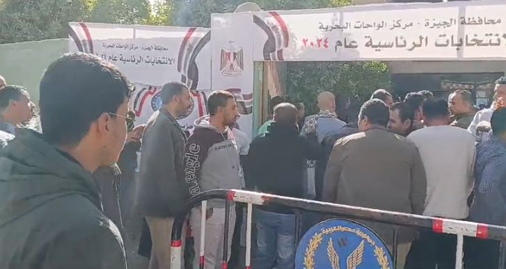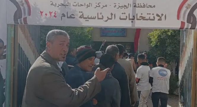 طوابير أمام مركز الواحات البحرية للمشاركة في الانتخابات الرئاسية 2024