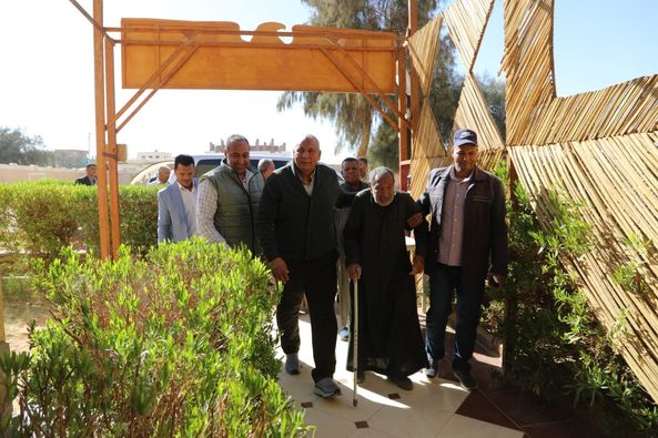 مسن عمره 94 عامًا يدلي بصوته بالداخلة.. والمحافظ يقرر له عمرة