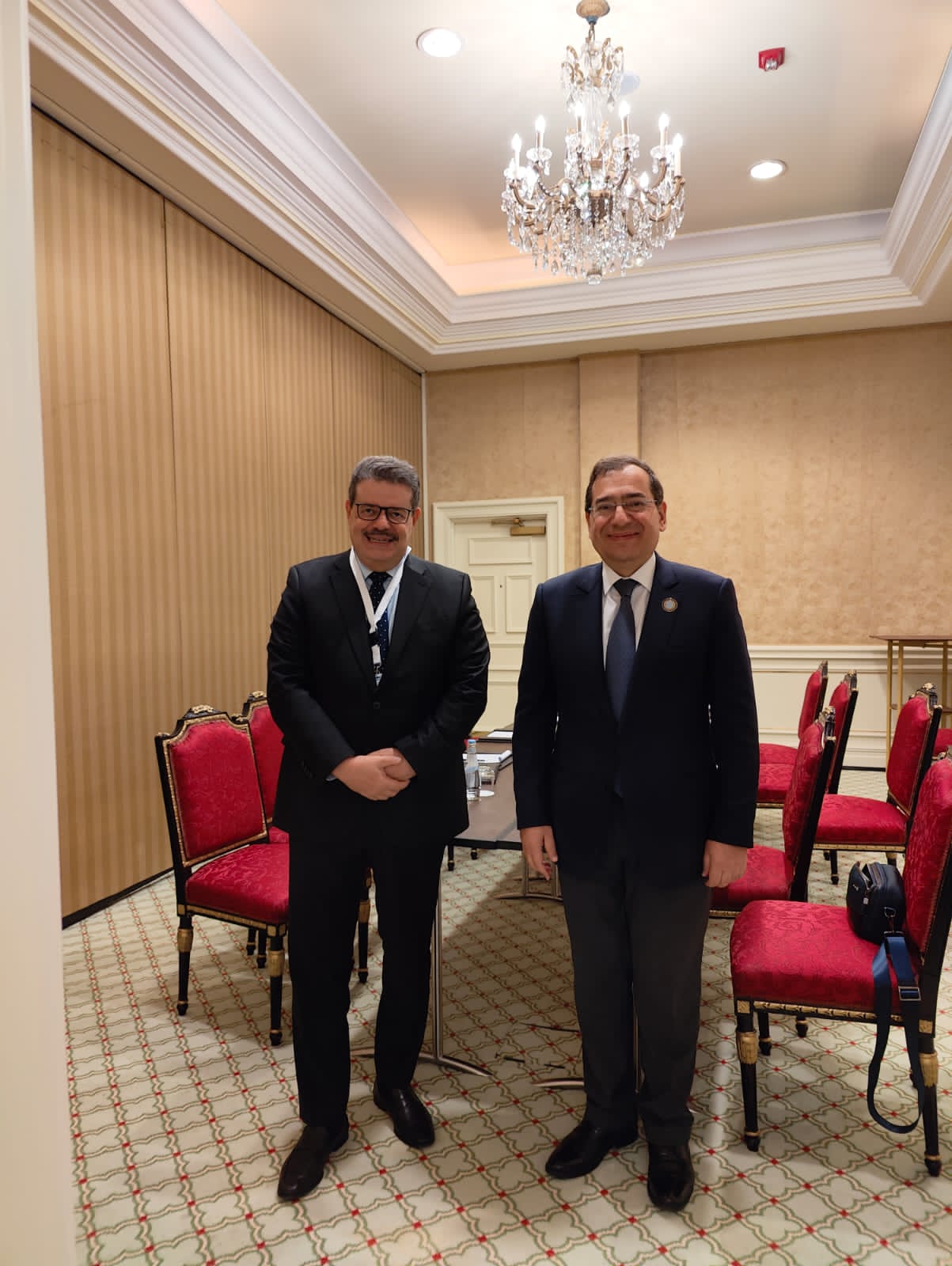 عقد المهندس طارق الملا وزير البترول والثروة المعدنية جلسة مباحثات مع الدكتور سعيد سليمان الشماسى وزير النفط اليمنى والوفد المرافق له على هامش المشاركة فى مؤتمر الطاقة العربى الثانى عشر بقطر والذى تنظمه منظمة الأقطار العربية المصدرة للبترول أوابك.