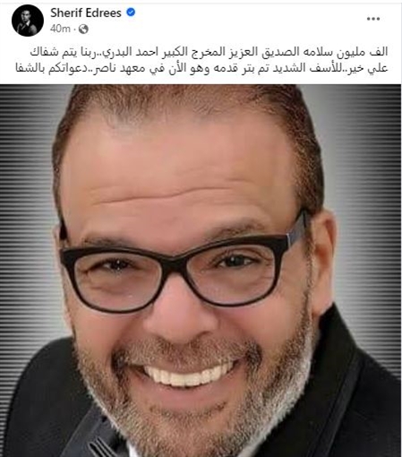 وكتب شريف إدريس: "ألف مليون سلامة الصديق العزيز المخرج الكبير أحمد البدري .. ربنا يتمم شفاك على خير .. للأسف الشديد تم بتر قدمه وهو الآن في معهد ناصر .. دعواتكم بالشفاء".