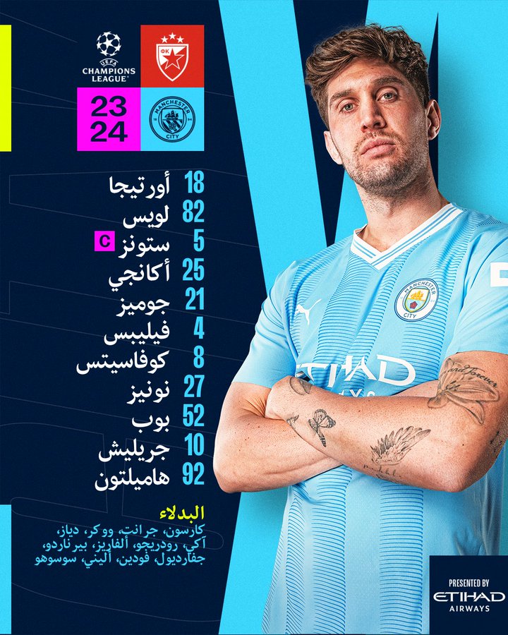تشكيل مانشستر سيتي الرسمي لمواجهة سيرفينيا زفيزدا