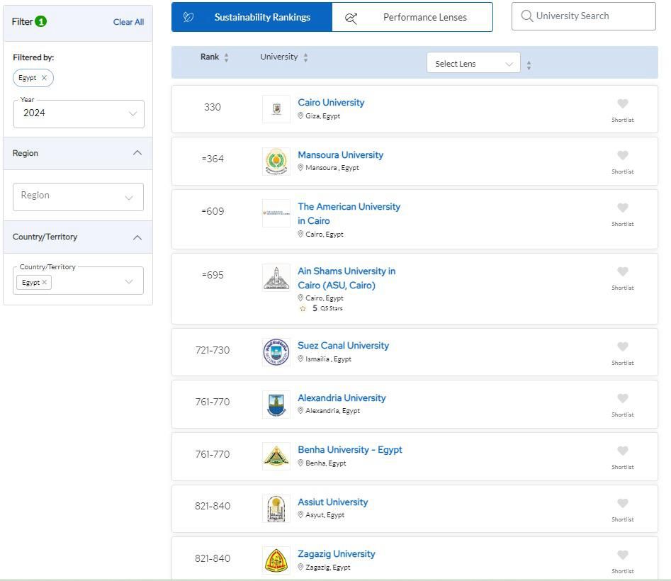 جامعة القاهرة تحتل المرتبة 106 عالميًا في تصنيف QS للاستدامة