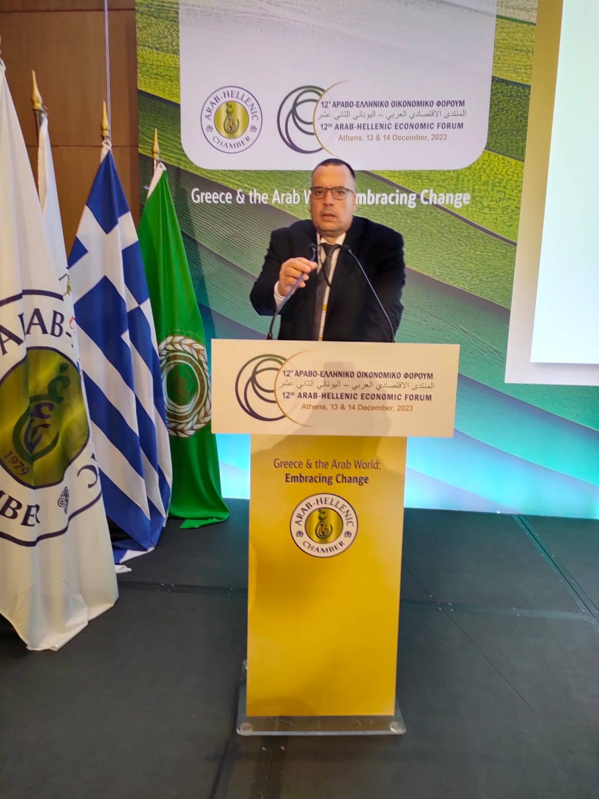 شارك فؤاد عمرو سكرتير عام الغرفة التجارية لكفر الشيخ في أعمال المنتدي الاقتصادي العربي اليوناني الثاني عشر الذي عقد باليونان -اثينا خلال الفترة من 13-14 ديسمبر 2023 بفندق اثينيوم انتركونتيتنال.
