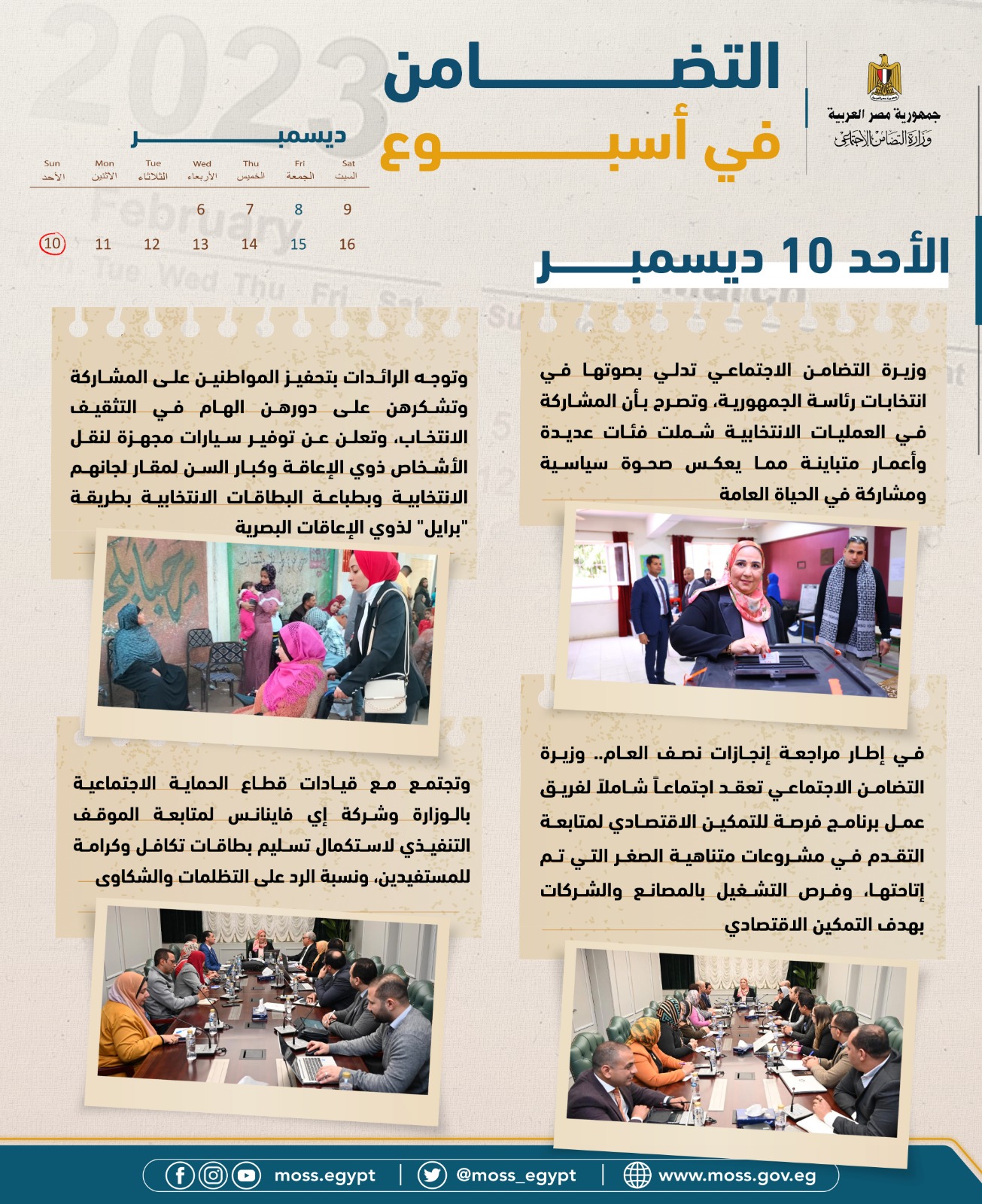 -  غرفة عمليات التضامن الاجتماعي تواصل متابعة الانتخابات الرئاسية وتنظم جهود الرائدات الاجتماعيات، وترصد تيسير مشاركة ذوي الإعاقة وكبار السن في العملية الانتخابية.