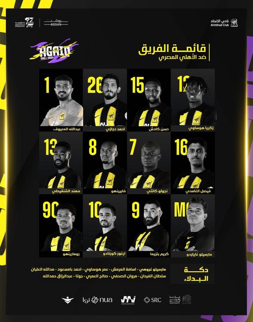 وجاءت تشكيلة الاتحاد للمباراة كالأتي :
